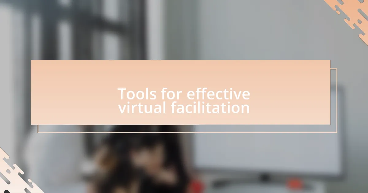 For effective virtual facilitation, selecting the right tools is vital. I’ve found that platforms like Zoom or Microsoft Teams serve not just as communication tools, but as interactive spaces that can enhance participation. One time, I utilized a feature to create polls during a discussion, which instantly elevated engagement. The real-time feedback gave everyone a voice, and it was exhilarating to see ideas take shape based on collective input. Have you used polls in your sessions?